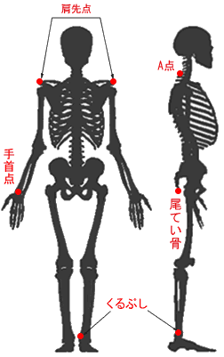 腕を45°に開いた状態で、A点〜肩先点〜手首点まで |