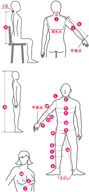 ★ 特に関節部周辺や、首囲、手首、足首、背丈、股下部分はより慎重に計測をして下さい。