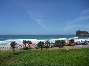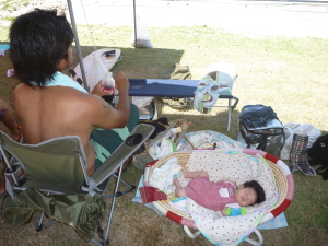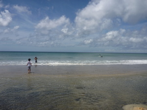 昼まで郡体の応援をして、暑いので子供たちを連れて西側の穏やかな海にやって来ました。