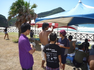 サーフィンの種目は西之表、中種子、南種子、屋久島の4チームで競います。